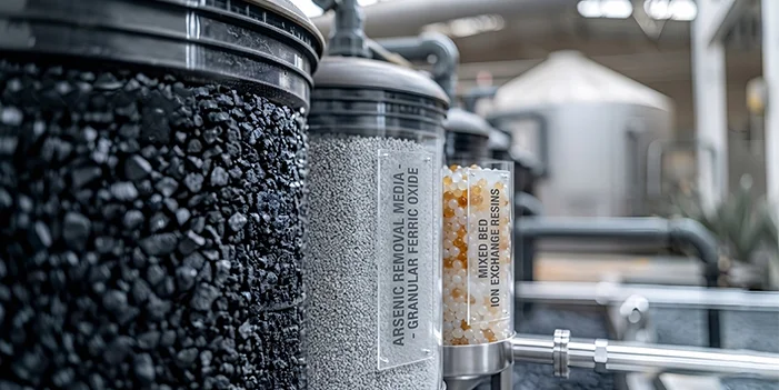 We provide a wide configuration of large capacity Resins (cation, anion, and mixed bed) for water softening and deionization, needed in boiler feed or pharmaceutical purposes. We have a granular and powder Activated Carbon that works well in case of getting rid of odours and VOCs, but our Specific filtration sand, Anthracite, and Cartridge filters are the final physical barrier that resists turbidity.