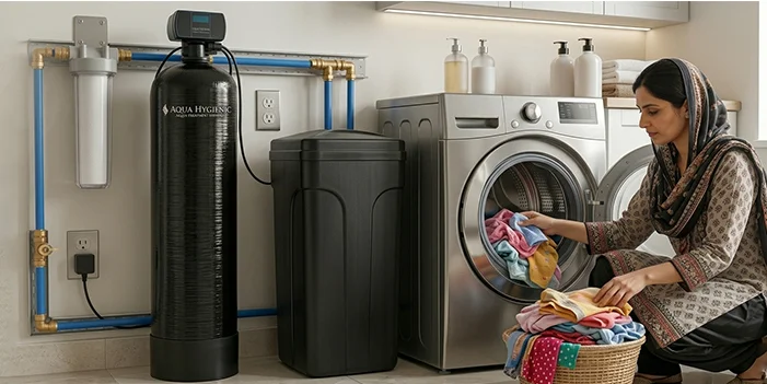 The Whole House Filtration systems offered by Aqua Hygienic provide a comprehensive solution to water-related challenges of our times. They make sure that every droplet of water arriving at any home is cleaned and harmless to drink. In Pakistan, the quality of water sources is often endangered by bacterial expansion, chemicals, tough metals, and high-melting solids. Limited filtration is not enough. To solve this, Aqua Hygienic uses a centralized and comprehensive approach. This approach provides clean water at all household outpoints.
